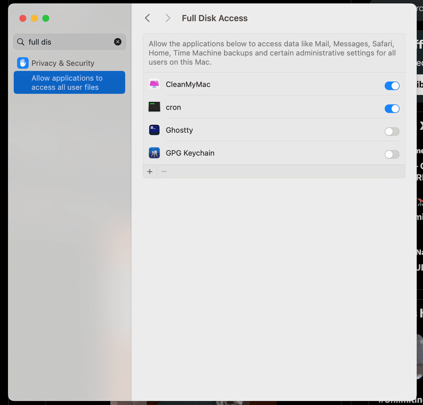 IMPORTANT: None of this will work, if you don’t give full disk access to cron.